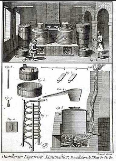 18th century distillary as it appears in Diderot's Encyclopedia. The Albany distillery may have looked something like this. |